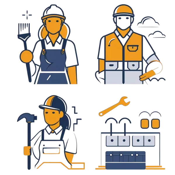 Profissionais que prestam serviços como decoração, limpeza de obra, eletricistas, reformas, instalador de ar condicionado, jardinagem, pintura etc.